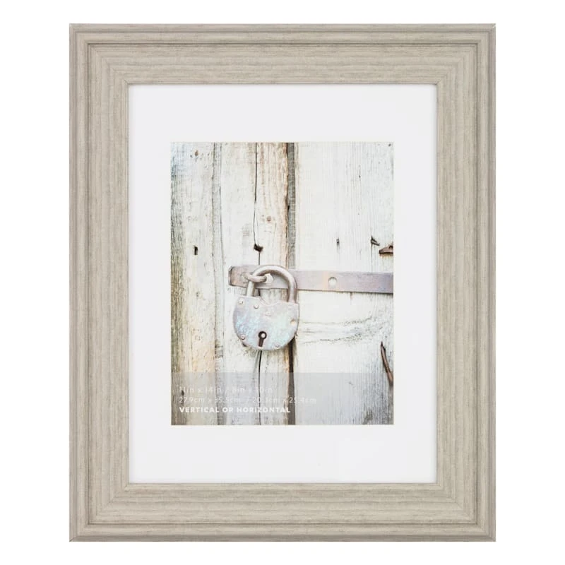11×14 Matted To 8×10 Scoop Profile White Mat Wall Frame, Light Grey