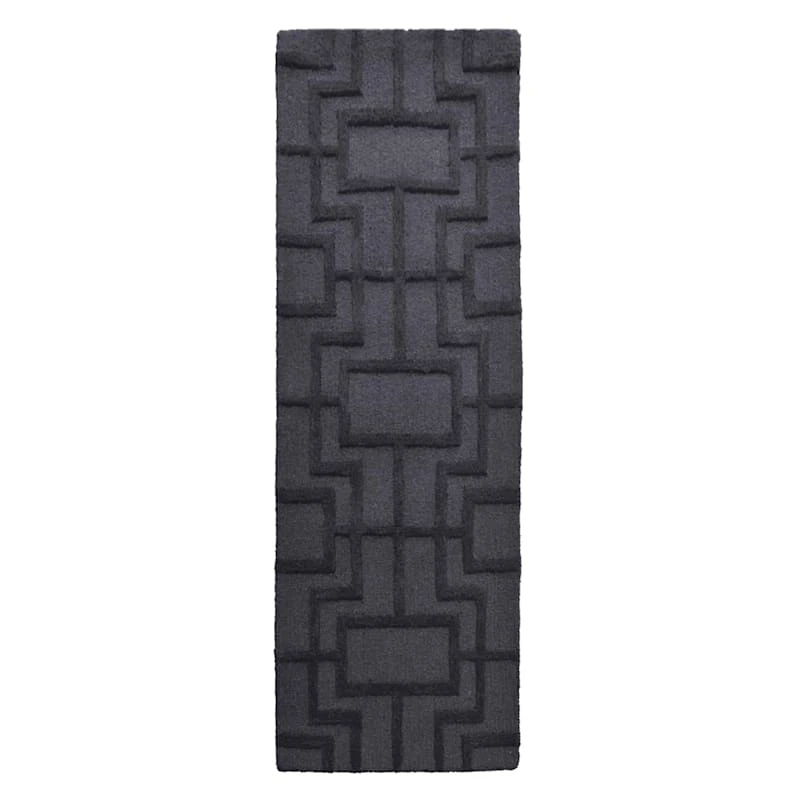 (A481) Crosby St Black Geometric Line Runner, 2×6