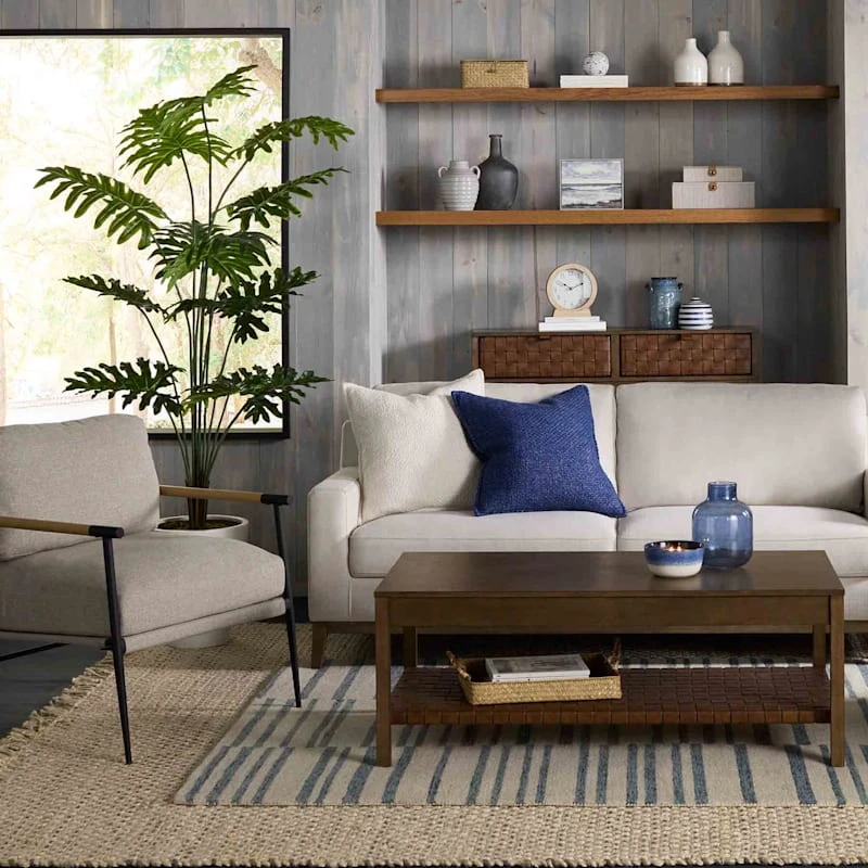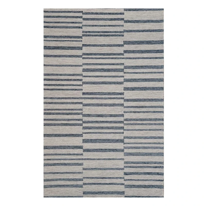 (A507) Ty Pennington Owens Blue & White Broken Stripe Area Rug, 5×7