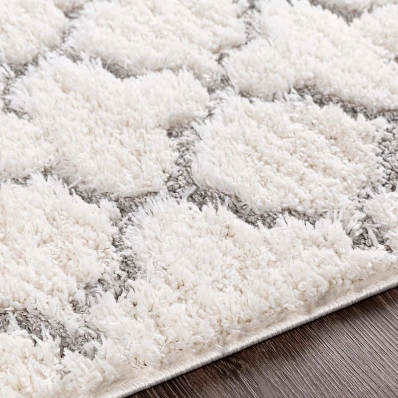 Introduce this modern shag rug into your home and transform it into ultimate cozy space. The on-trend pattern on a soft, plush high-low pile creates extra depth and the neutral tones will compliment any decor. Perfect for a bedroom, living room, loft, playroom, or anywhere you want to add style and comfort. Made of 100% polypropylene in Turkey, this rug is durable and an amazingly comfy addition to any floor throughout your home.