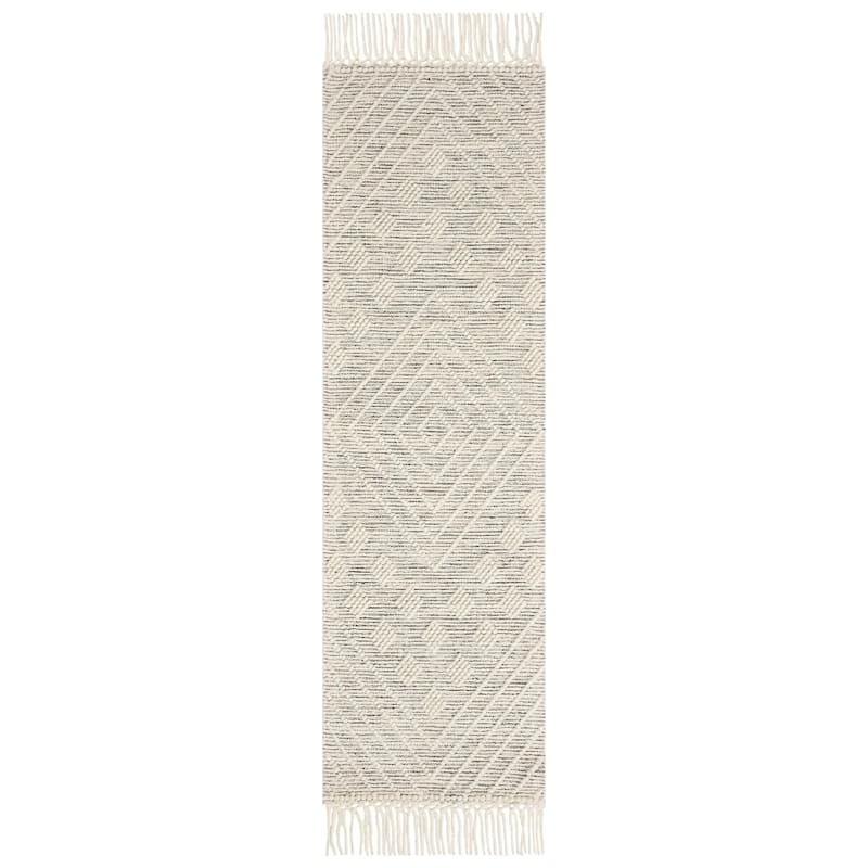 (B776) Reese Ivory Diamond Design Fringe Runner, 2×7