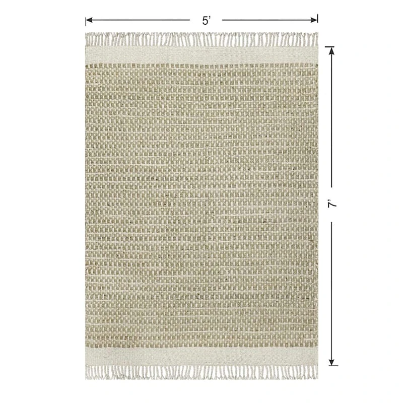 Modern farmhouse meets At Home prices in Honeybloom, our exclusive new brand that celebrates life lived together. All artistic aspects aside, area rugs help absorb and decrease noise as they soften the step on hard flooring within your home. Our Dunstan 5x7ft. striped area rug, designed with neutral color combo, brings an element of organic simplicity to your space. Perfectly at home in casual to formal settings, this fringed rug is a natural go-to for eclectic living rooms, bedrooms and so much more.
