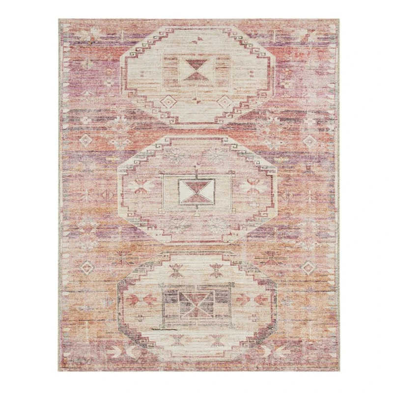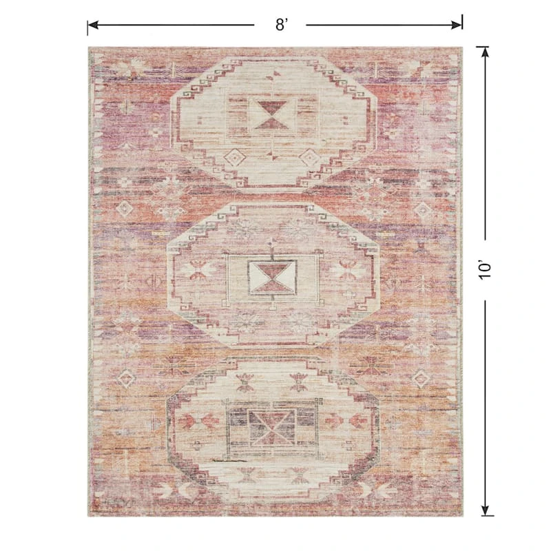 (B826) Red & Pink Tribal Patterned Washable Area Rug, 8×10
