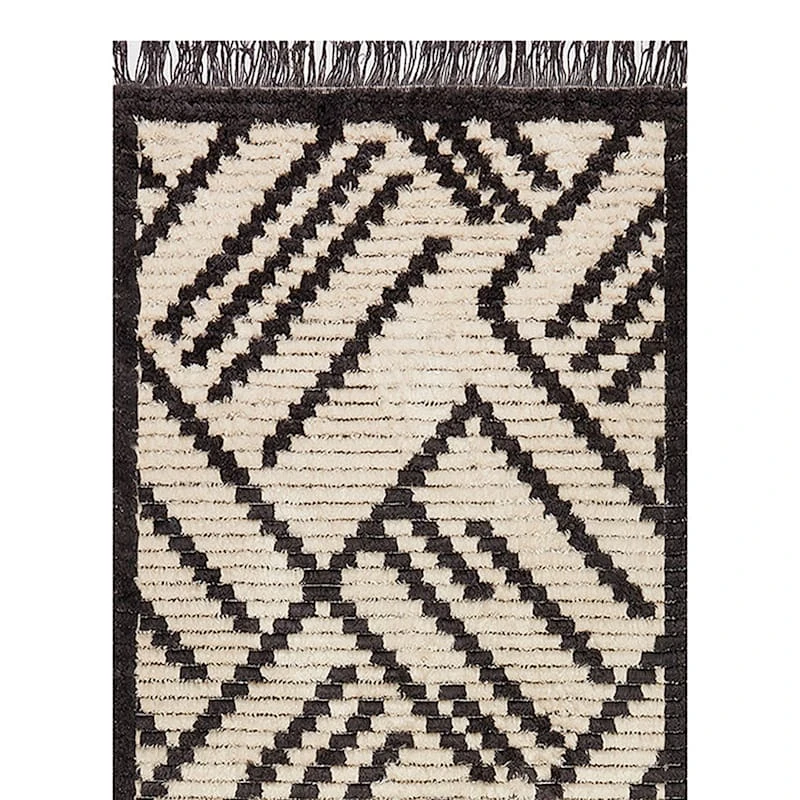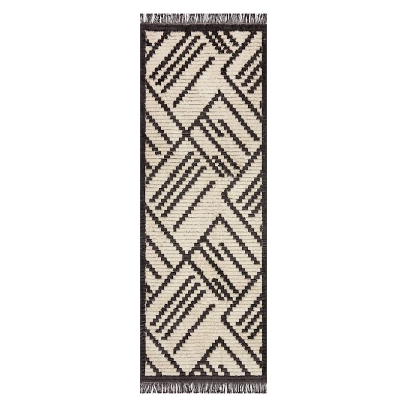 (C161) Tracey Boyd Black & Ivory Fringe Runner, 2×7