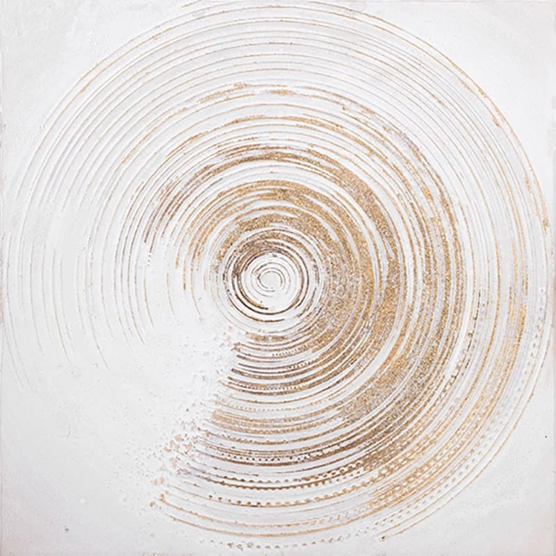 They say beauty is in the eye of the beholder. Art is too. Add a little character to any room in your home with our 30in. circular abstract canvas wall art. The possibilities are endless with this white and gold wall decor. A multicolor abstract linear circle motif creates visual interest against a visually interesting backdrop. Hang this wall decor to make a bold statement and to add a touch of personality to your home decor.