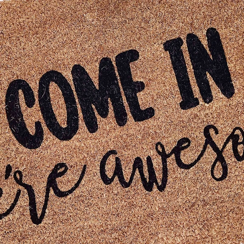 Our natural and black “Come In We’re awesome” coir doormat lets you express your style as you welcome friends and family. With a wonderful natural hue, this 18x30in. doormat coordinates with all your seasonal decor.