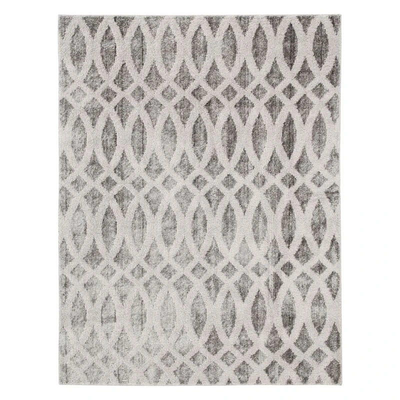 Our synthetic Sophelia area rug exquisitely blends vintage and contemporary sensibilities to create an interesting design that will be a favorite for years to come. This meticulously styled piece, with its narrow interlocking grey and ivory tufted chain pattern, will provide a durable and natural foundation to your whole room’s decor. The non-slip back keeps the rug in place. Available in 3x5ft., 5x7ft. and 8x10ft. sizes and a 2x7ft. runner.