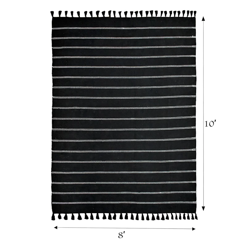 (D582) Honeybloom Black Striped Woven Area Rug, 8×10