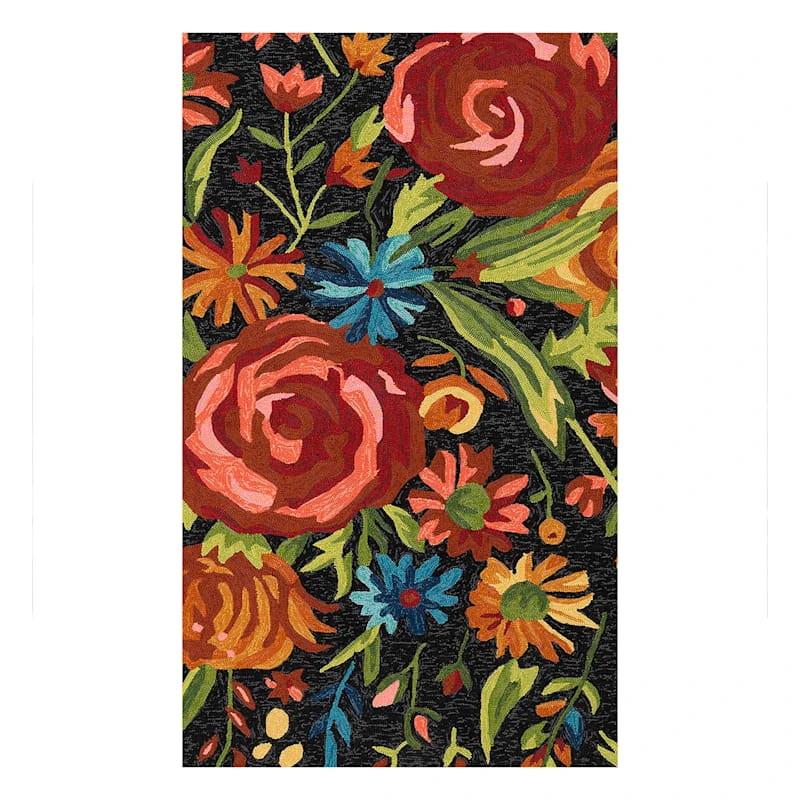 It’s always nice to take time to stop and smell the flowers. While you’re at it, are you looking to refresh your room? All you have to do is roll out the Santa Monica black floral area rug to set a new foundation in any room. Boasting a colorful oversized floral pattern in brilliant shades of red, pink, blue, green, yellow and orange, this rug will make quite the statement in any living area in your home. Available in 3x5ft. and 5x7ft. sizes and a 2x5ft. runner.
