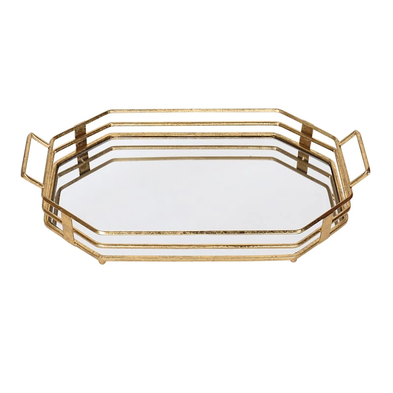 Gold Glass Tray With Mirror Top, 23×13