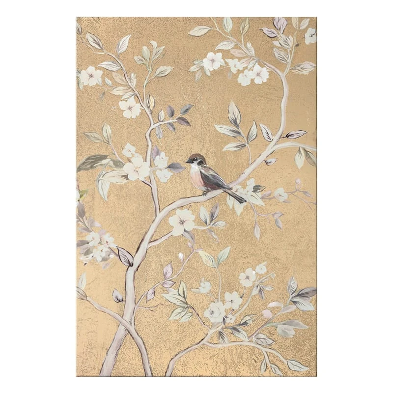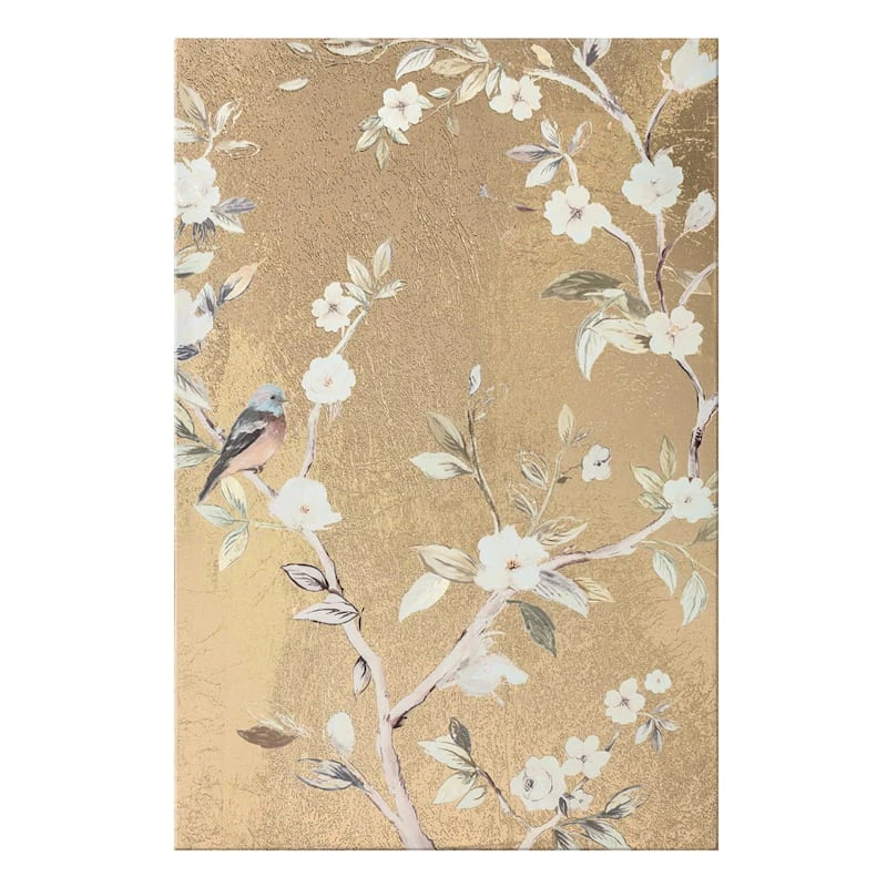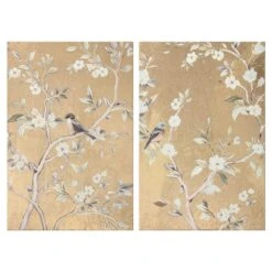 They say beauty is in the eye of the beholder. Art is too. Add a little character to any room in your home with our 20x30in. 2-piece Gold Foiled Chinoiserie canvas wall art set. The possibilities are endless with this gold, tan, ivory, grey, blue, black and white wall decor. A multicolor birds on branches chinoiserie motif creates visual interest against a visually interesting backdrop. Hang this wall decor to make a bold statement and to add a touch of personality to your home decor.