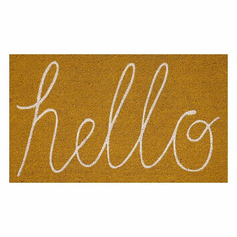 Our natural and white “hello” coir doormat lets you express your style as you welcome friends and family. With a wonderful natural hue, this 18x30in. doormat coordinates with all your seasonal decor.