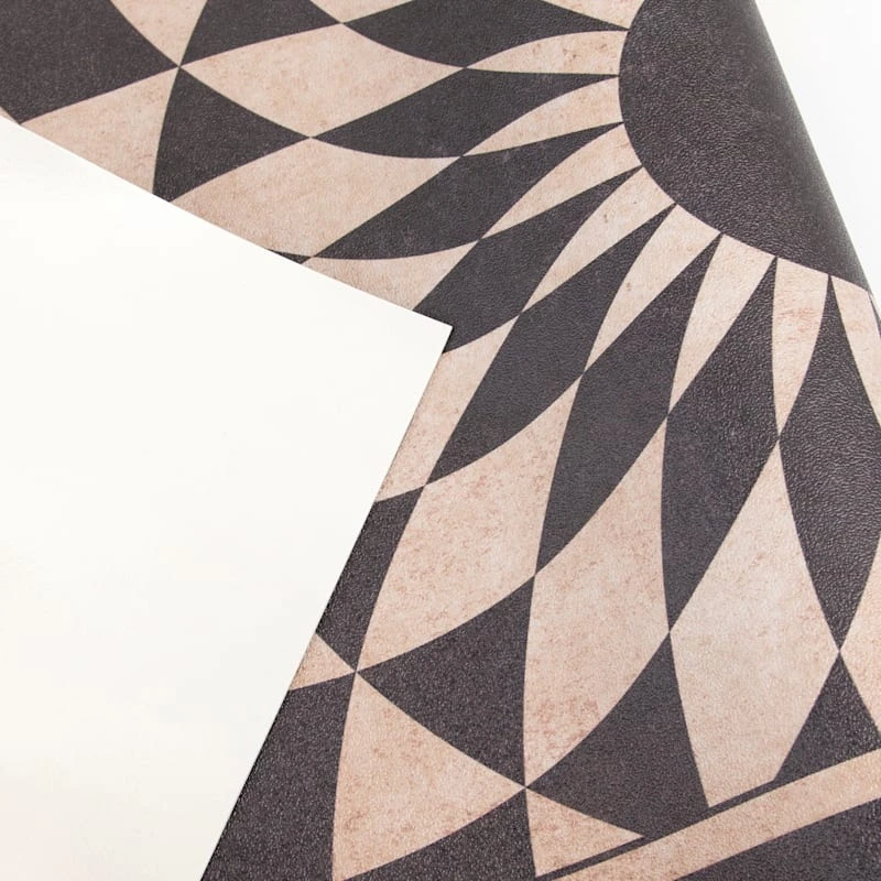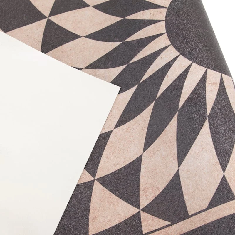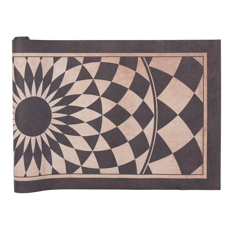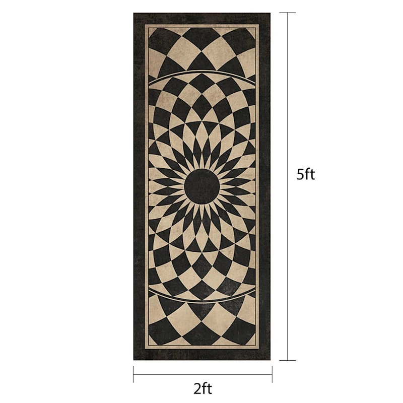 Our charming vinyl black/beige 2x5ft. accent runner rug is ideal for updated and modern settings, and it helps with noise levels and keeps bare floors nice and comfy. The smooth vinyl and global medallion tile design offers a nice feeling decorative touch. This wonderful area rug will be comfortable in a contemporary loft or just at home in a modern farmhouse.