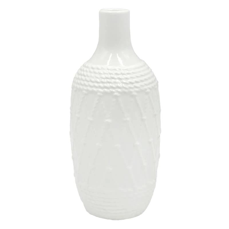 White Ceramic Rope Vase, 10"